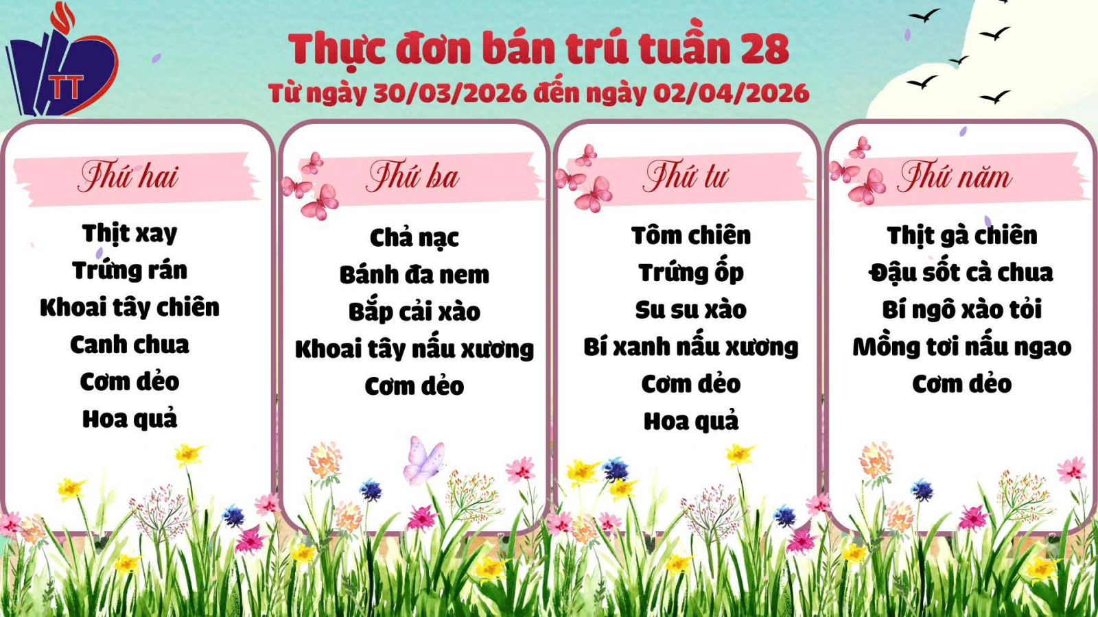 THỰC ĐƠN ĂN BÁN TRÚ TUẦN 28(29/03/2026)