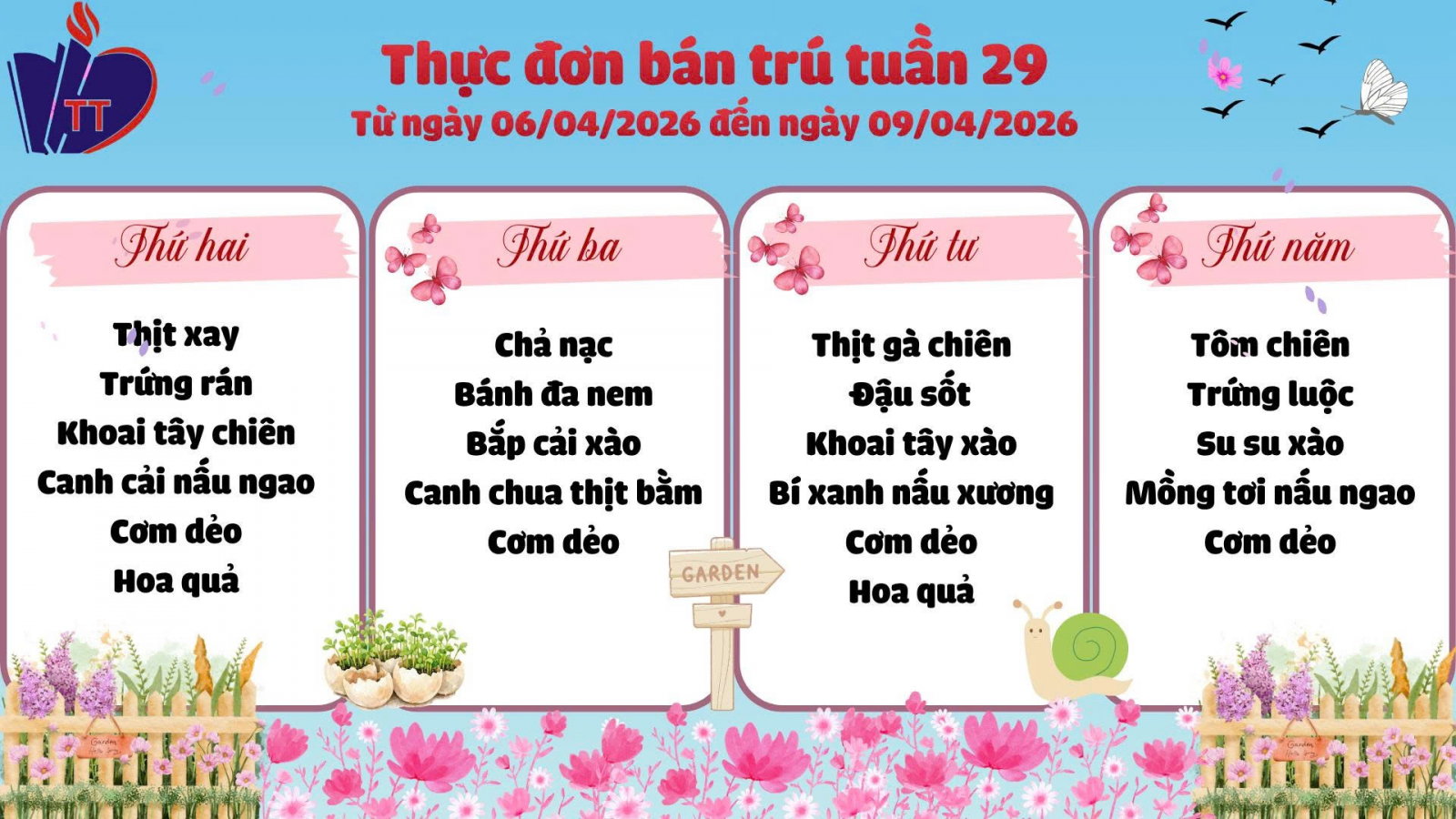 THỰC ĐƠN ĂN BÁN TRÚ TUẦN 29(05/04/2026)