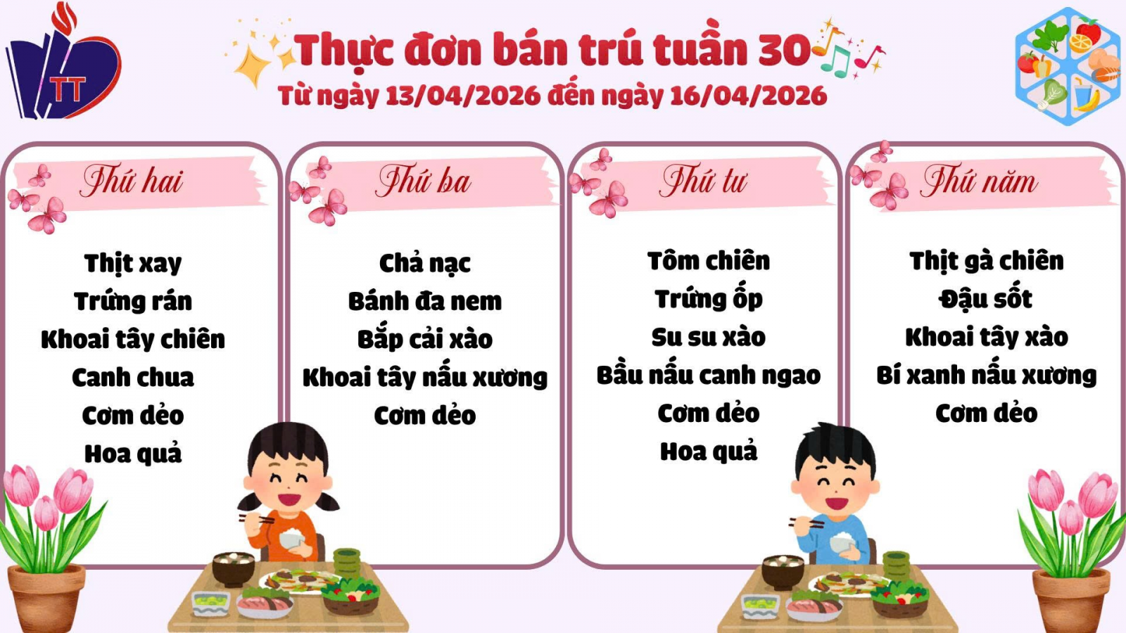 THỰC ĐƠN ĂN BÁN TRÚ TUẦN 30(13/04/2026)