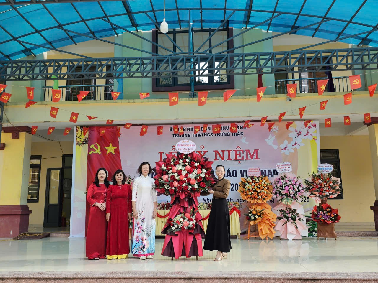🌺 🌺 🌺 Đặc biệt, buổi lễ vinh dự được đón tiếp các đồng chí cán bộ quản lý cũ từng gắn bó, xây dựng và phát triển nhà trường qua nhiều giai đoạn. Sự hiện diện của các thầy cô càng làm không khí buổi lễ thêm ấm áp, gợi nhắc bao kỷ niệm đẹp và truyền thống tốt đẹp mà các thế hệ đi trước đã để lại. Những bó hoa tươi thắm và lời cảm ơn sâu sắc đến các đồng chí nguyên cán bộ quản lý – những người chèo lái con thuyền tri thức, dẫn dắt tập thể sư phạm vững bước.