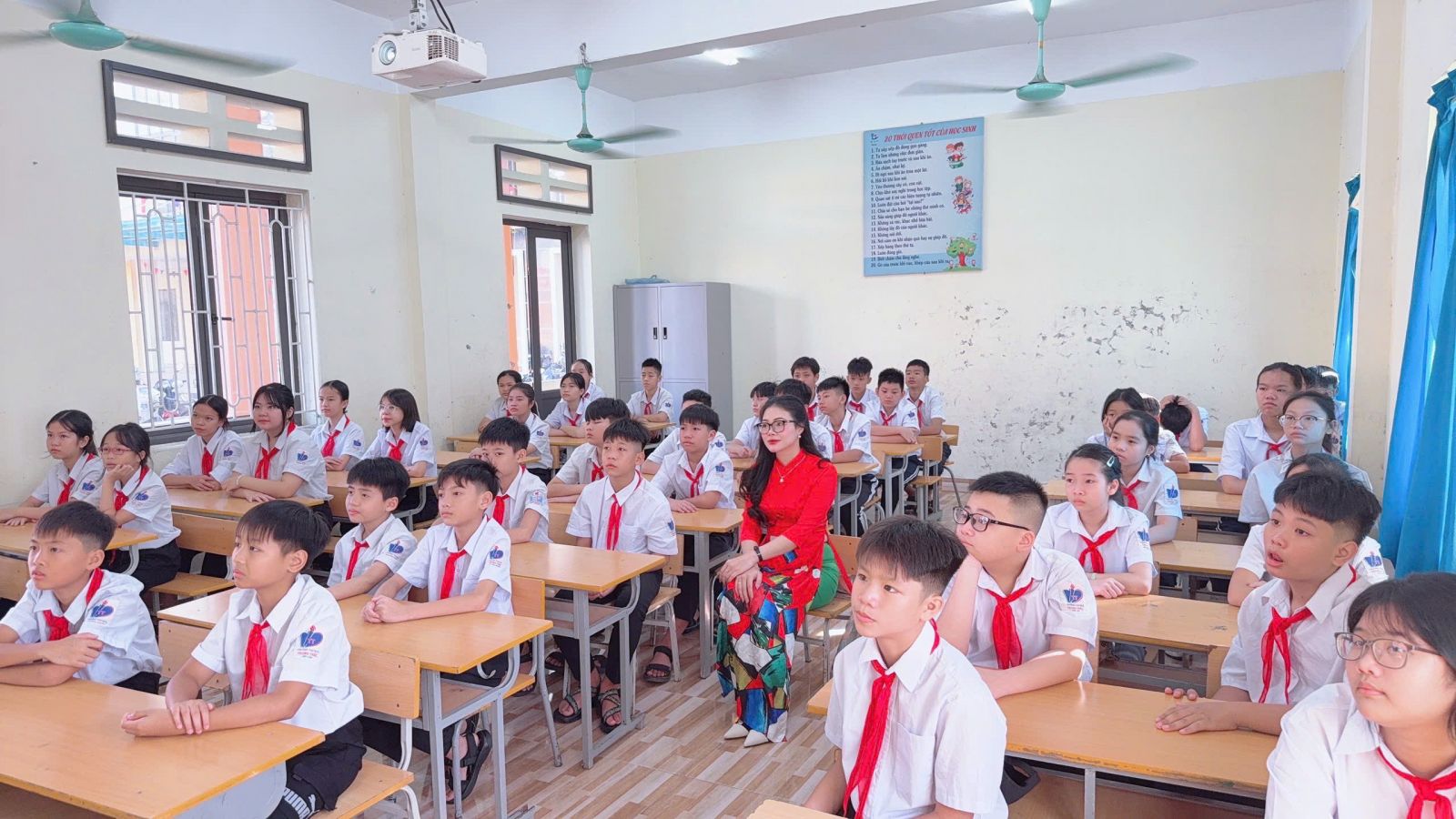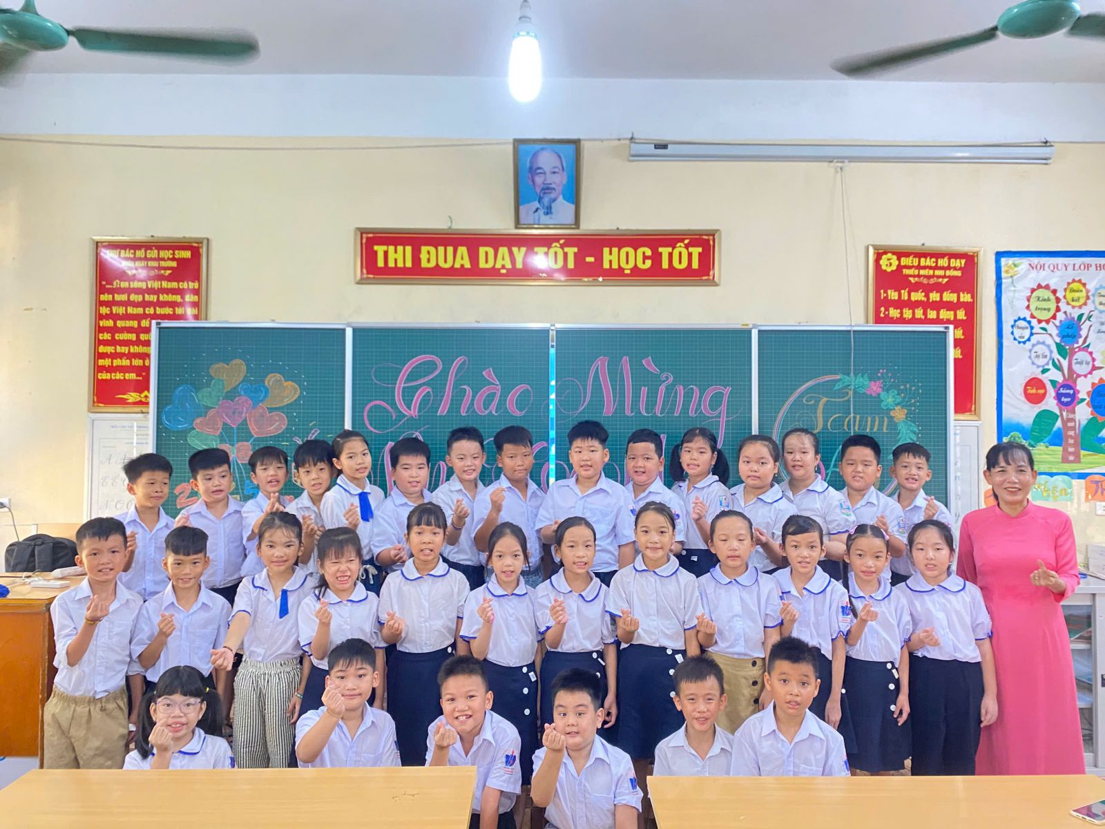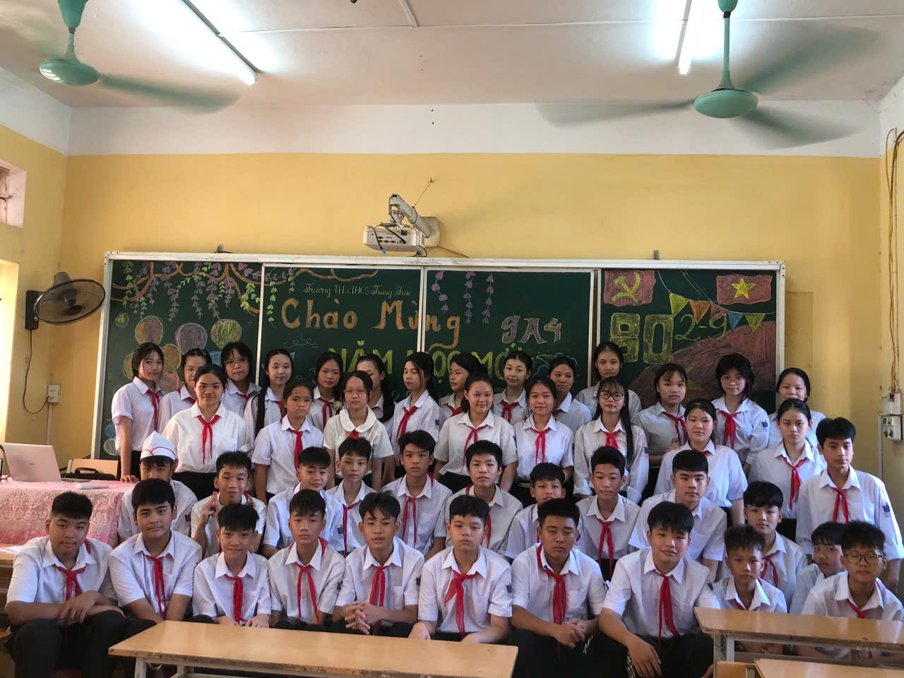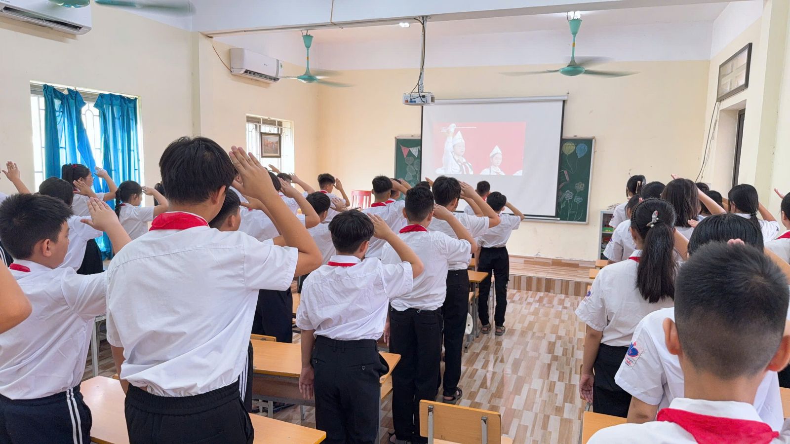 Điểm nhấn đặc biệt của Lễ Khai giảng năm nay: Lần đầu tiên trong lịch sử, lễ khai giảng được tổ chức đồng loạt trên toàn quốc, cùng một thời điểm, từ mầm non đến đại học – tạo nên dấu mốc giàu ý nghĩa. Tại hội trường, Ban lãnh đạo và các đại biểu trang nghiêm theo dõi chương trình trực tiếp từ Trung tâm Hội nghị Quốc gia. Các em học sinh tham dự lễ ngay tại lớp học của mình – nơi được trang trí rực rỡ, ấm áp, để mỗi lớp học trở thành một “sân khấu khai giảng” đầy sắc màu và niềm vui.