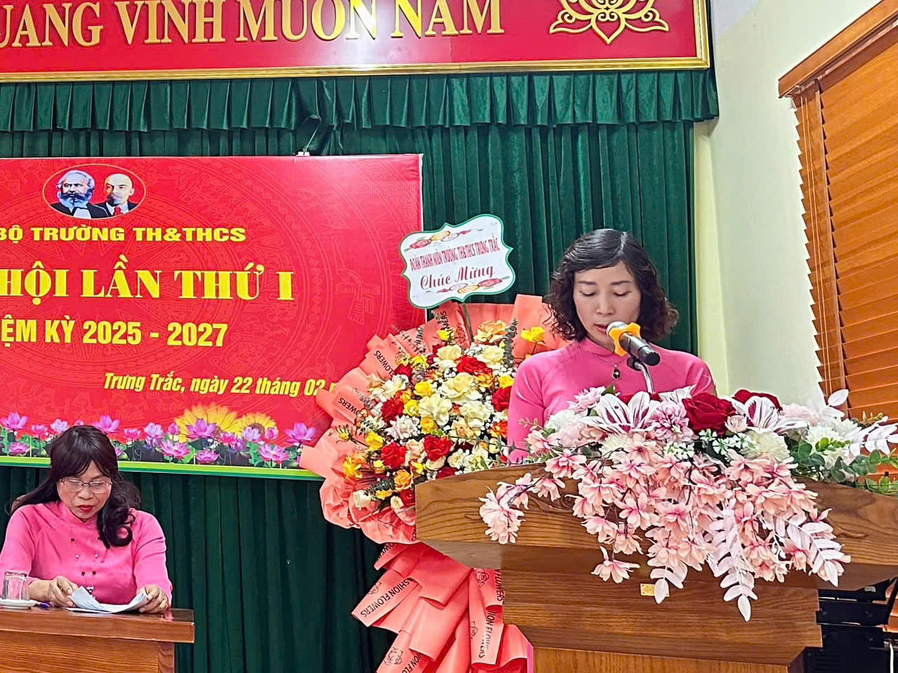 Về dự và chỉ đạo Đại hội có đồng chí Ngô Văn Tình Uỷ viên Ban thường vụ, Chủ tịch MTTQ xã Trưng Trắc và các đồng chí trong đoàn công tác cùng 38/38 đảng viên trường TH&THCS Trưng Trắc tham dự.