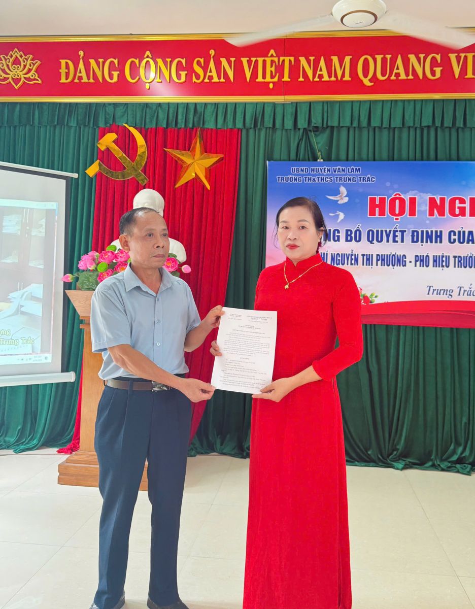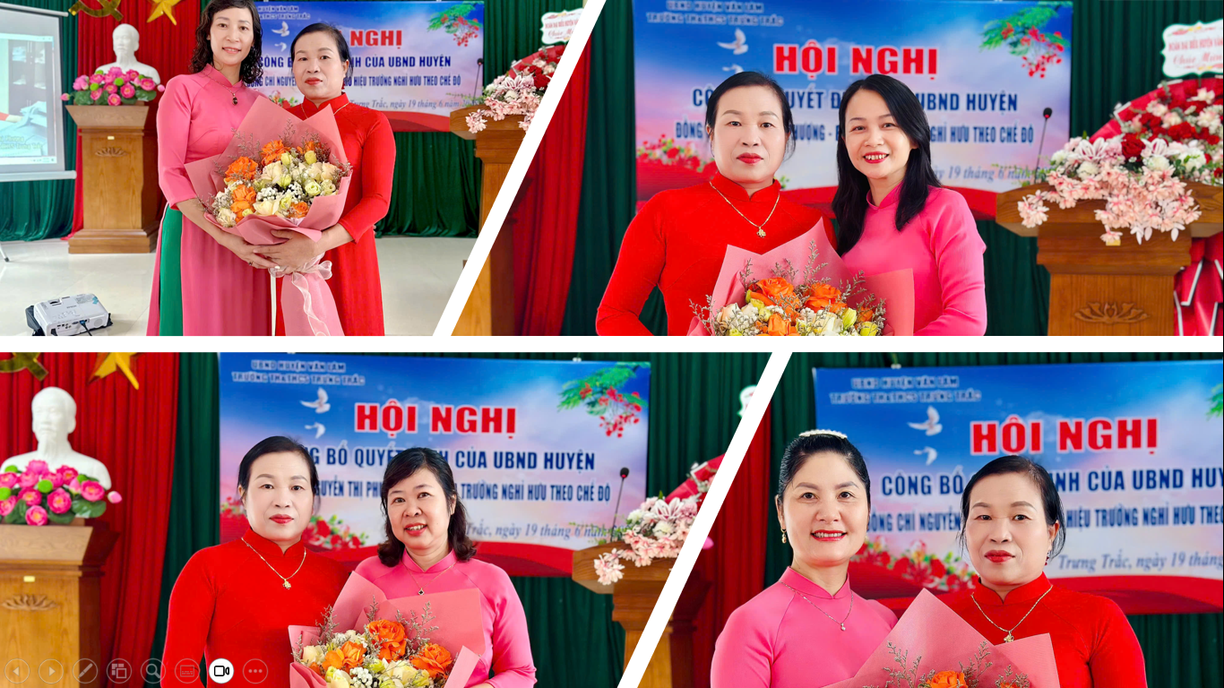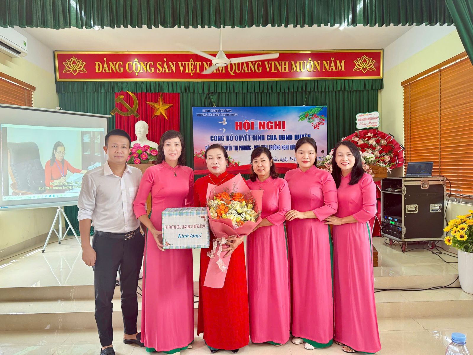 Trong cuộc đời mỗi con người ai cũng phải trải qua thời gian học tập, đi làm và rồi thay đổi nơi công tác, giữ các chức vụ khác nhau, Biết bao gắn bó và có nhiều kỉ niệm tốt đẹp không thể nào quên. Với 35 năm 10 tháng trong nghề dạy học trồng người, 32 năm 10 tháng công tác tại trường và 19 năm 3 tháng với cương vị là phó Hiệu trưởng nhà trường. Đ/c đã cùng với các thầy, cô giáo trong BGH nhà trường, tập thể HĐSP nhà trường tận tâm tận tuỵ hoàn thành tốt nhiệm vụ vẻ vang của mình, góp phần cùng với nhà trường thực hiện thắng lợi nhiệm vụ qua các năm học, đưa thành tích của nhà trường ngày một đi lên. Với sự nỗ lực phấn đấu, sự cống hiến về trí tuệ, về sức khoẻ cho sự nghiệp trồng người, hôm nay đ/c được Đảng và nhà nước cho về nghỉ chế độ. Để ghi nhận công lao đóng góp của đ/c trong thời gian công tác tại trường đồng thời để lưu giữ lại những kỷ niệm tốt đẹp nhất với các đồng nghiệp, học sinh của mình trong môi trường sư phạm này. Hôm nay Trường TH&THCS Trưng Trắc tổ chức Hội nghị công bố quyết định của Chủ tịch UBND huyện cho đồng chí Nguyễn Thị Phượng - phó hiệu trưởng Trường TH&THCS Trưng Trắc nghỉ theo chế độ.