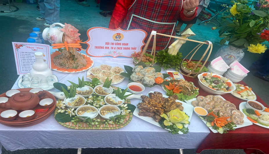CĐ trường TH&THCS Trưng Trắc kết hợp cùng CĐ trường Mầm non Trưng Trắc thành lập đội thi nấu ăn gồm 5 đ/c. Các đồng chí chuẩn bị thật chu đáo và kĩ lưỡng các nguyên vật liệu cho các món ăn theo chủ đề đội thống nhất lựa chọn.